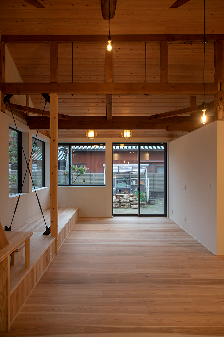既設の梁をあえて見せることで 圧迫感のない、開放的な空間へ。