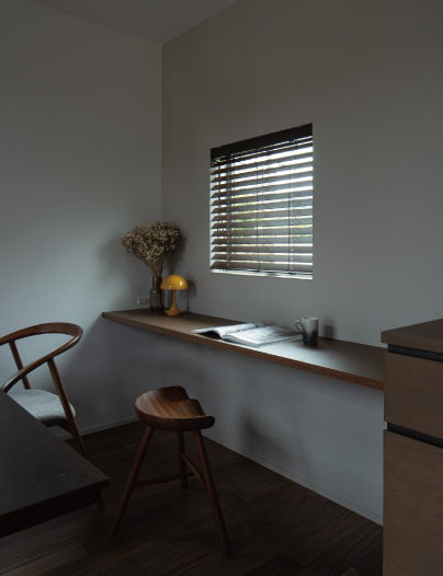 階段や、造作家具も好みの色で合わせて製作していただけたので、雰囲気が統一されており、おしゃれな家になりました。